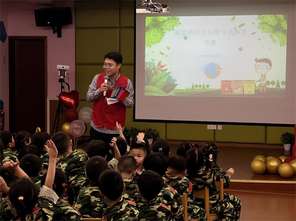 為引導(dǎo)孩子從小養(yǎng)成垃圾分類(lèi)的好習(xí)慣,實(shí)現(xiàn)“教育一個(gè)孩子、帶動(dòng)一個(gè)家庭、文明整個(gè)新北橋”的目標(biāo),杭州市錢(qián)塘區(qū)新灣街道新北橋社區(qū)聯(lián)合轄區(qū)致遠(yuǎn)幼兒園開(kāi)展“迎亞運(yùn),爭(zhēng)做分類(lèi)衛(wèi)士”垃圾分類(lèi)知識(shí)競(jìng)賽,從源頭減量,構(gòu)建家庭分類(lèi)內(nèi)循環(huán),打造全民分類(lèi)新北橋。
