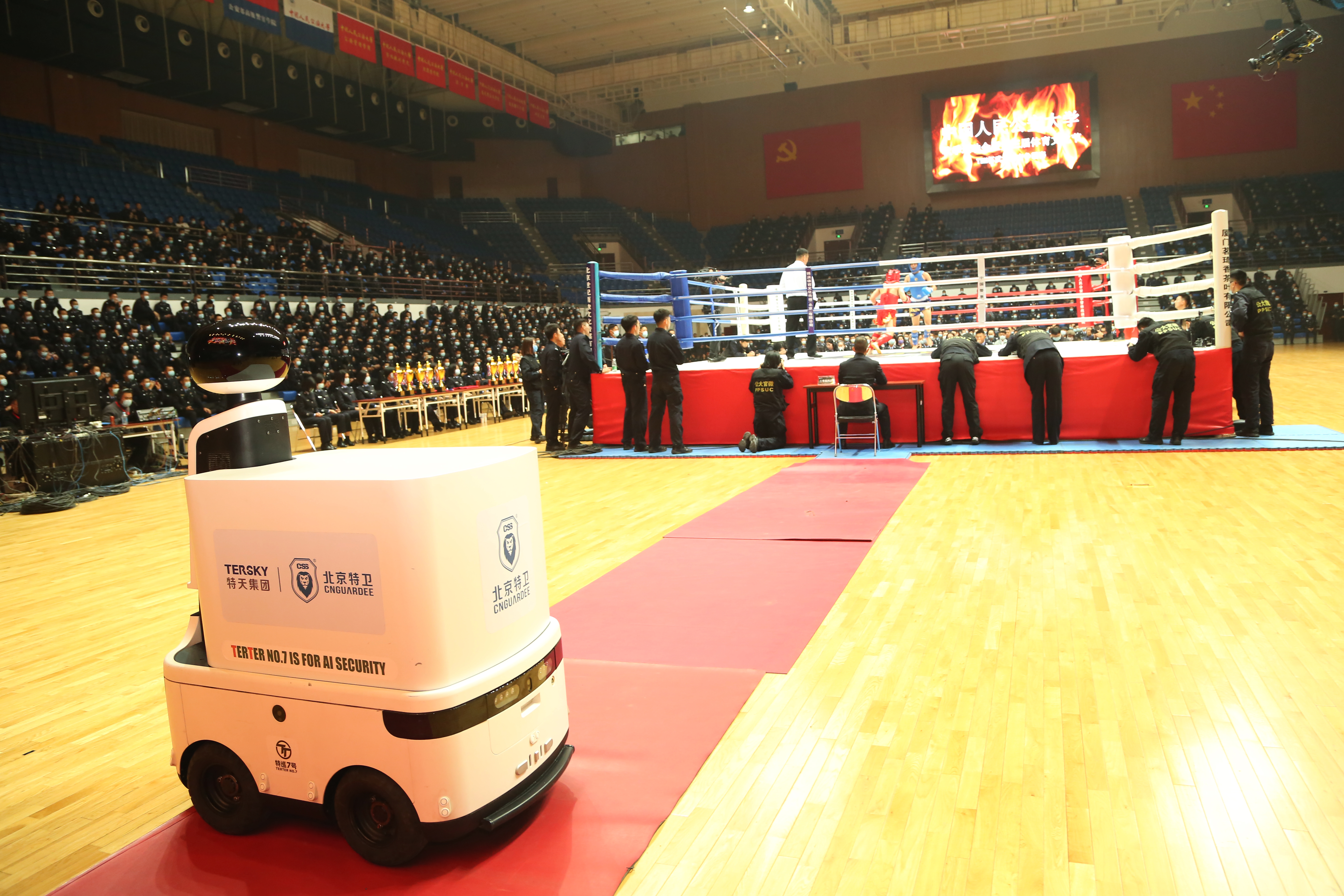 特巡安防機(jī)器人特別見證中國人民公安大學(xué)第三屆(TBM杯)武術(shù)搏擊爭霸賽