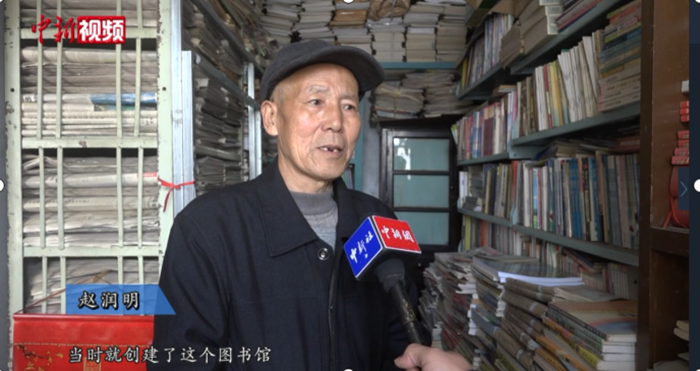 1981年趙潤明就創(chuàng)建了這個圖書館,主要是為農(nóng)民服務,因為當時(屬于)改革開放(初期),農(nóng)民也渴望科技知識,館內(nèi)擺放了一些種植、養(yǎng)殖、家庭副業(yè)的書刊,一直免費為本村和周邊的群眾(提供借閱)服務,目前,館內(nèi)書刊有5000多冊。