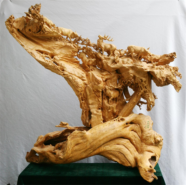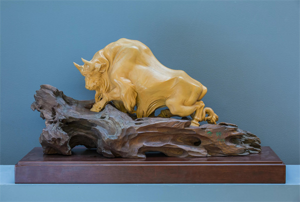 虞定良大師是工藝美術(shù)行業(yè)中的佼佼者,是一個(gè)現(xiàn)代開拓型的實(shí)干家,他有理想,有膽識(shí),有獨(dú)立的見解和魄力。他從十四歲起就跟隨父親(原浙江省工藝美術(shù)研究所副所長(zhǎng)虞明華先生)學(xué)藝,先后從事過石雕、木雕、牙雕、根雕創(chuàng)作,技術(shù)相當(dāng)全面,特別是黃楊木雕動(dòng)物,深得動(dòng)物雕塑家周輕鼎教授的真?zhèn)?,很有造詣。那些飛奔的駿馬,角斗的野牛,馴良的小鹿,健壯的大熊……在他刀下,變得那樣玲瓏剔透,栩栩如生,趣味盎然。因而,在全國(guó)各次藝術(shù)精品展中,專家認(rèn)為他的動(dòng)物作品夸張而不做作,剛強(qiáng)而不兇猛,奔放而不粗野,是力和美的具體表現(xiàn),是傳統(tǒng)與革新的高度統(tǒng)一。