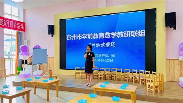 發(fā)布時(shí)間:2023-06-27 09:05:38 | 來(lái)源:中國(guó)網(wǎng) | 作者:彭州市通濟(jì)幼兒園 | 責(zé)任編輯:?jiǎn)蹄?/span>2023年6月25日上午,彭州市學(xué)前教育數(shù)學(xué)教研聯(lián)組6月現(xiàn)場(chǎng)活動(dòng)在彭州市通濟(jì)幼兒園舉行。彭州市學(xué)前與終身教育科孫科長(zhǎng)、冮科長(zhǎng)、鄭小梅老師,彭州市教育研究培訓(xùn)中心徐南靜老師,彭州市學(xué)前教育數(shù)學(xué)教研聯(lián)組組長(zhǎng)、彭州市實(shí)驗(yàn)幼兒園園長(zhǎng)周克霞,彭州市學(xué)前教育數(shù)學(xué)教研聯(lián)組副組長(zhǎng)、彭州市九尺幼兒園園長(zhǎng)楊琴,以及彭州市各姐妹園園長(zhǎng),數(shù)學(xué)聯(lián)組所有老師參加了此次現(xiàn)場(chǎng)觀摩活動(dòng)。