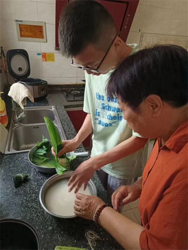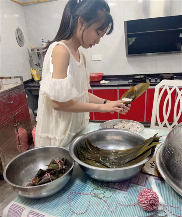 根根絲線連,切切情意牽。端午期間,學校政教處還布置了特別的家庭作業(yè),安排同學們向爺爺奶奶、爸爸媽媽學包粽子。同學們和家人一起摘粽葉、泡糯米、包粽子……品味勞動果實的甜美,體會分享的快樂。