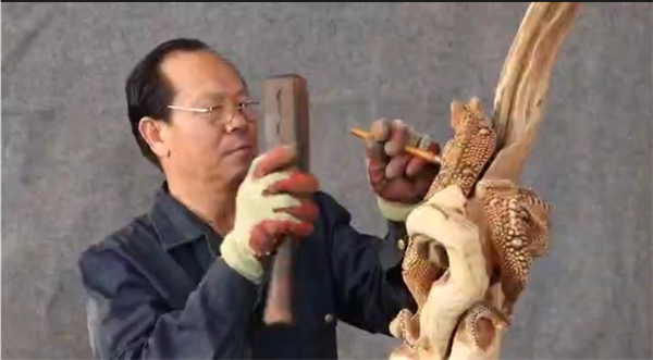 雕琢刀飛舞 枯木又逢春 傳承根雕藝術(shù) 守護文化根脈 彰顯彭國亮的根雕情懷
