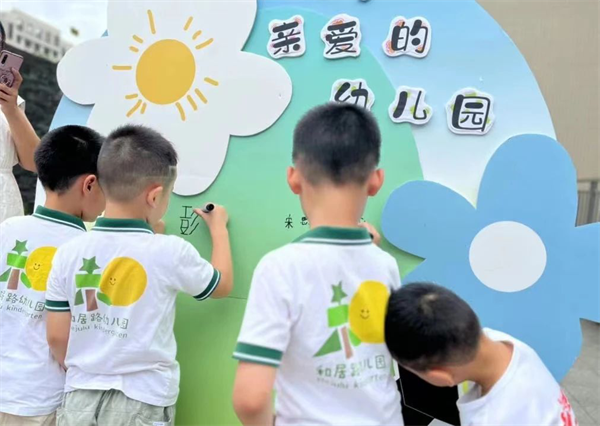 活動當(dāng)天,幼兒入園后首先進行簽到,用他們稚嫩卻又堅定的簽名為難忘的幼兒園生活留下記憶。