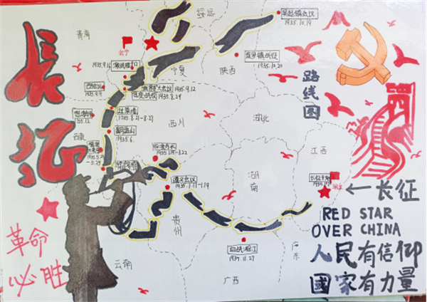 紅色閱讀,筆墨生香。同學(xué)們將文字化作筆尖的精靈,化作手中的創(chuàng)意精品,精心繪制,妙手生花。繪本長(zhǎng)征故事、“小棗花”繪黨旗黨徽、長(zhǎng)征英雄人物檔案卡、長(zhǎng)征路線圖海報(bào)、長(zhǎng)征故事讀后感、長(zhǎng)征詩(shī)詞軟筆、硬筆書寫秀等。一張張圖文并茂、漂亮精致的作品,讓讀書變得豐富多彩,有深度,有質(zhì)感。