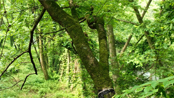 此次發(fā)現(xiàn)自然結(jié)果的合歡盆距蘭附生在崀山景區(qū)一棵活的黃連木上,生長狀態(tài)良好,附生數(shù)量較多。黃連木高達(dá)十幾米,位于夫夷江畔,小氣候適宜了合歡盆距蘭生長。此次自然結(jié)果的合歡盆距蘭共兩株,嫩綠的果莢飽滿豐盈,長勢良好,一株結(jié)果1顆,另一株結(jié)果4顆。