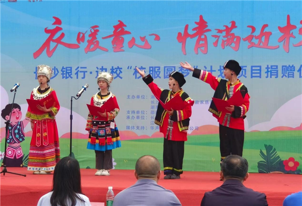 據(jù)悉,此次長沙市長沙銀行快樂益家慈善基金會、湖南省教育基金會、湖南日報社共同發(fā)起的邊?!靶7A夢”計劃,面向全省教育系統(tǒng)征集校服樣式,為邊校學(xué)子設(shè)計具有當?shù)靥厣男7?,并將在今年秋季,向隆回縣虎形山瑤族鄉(xiāng)草原學(xué)校、花垣縣邊城鎮(zhèn)磨老小學(xué)、石門縣羅坪鄉(xiāng)羅坪完小等30所山區(qū)邊界學(xué)校、超萬名留守兒童交付春、秋季校服。(通訊員 陳科帆、陽遠志)