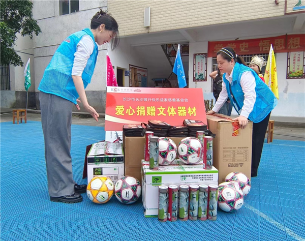 接下來的互贈儀式環(huán)節(jié)中,長沙銀行股份有限公司工會副主席、長沙市長沙銀行快樂益家慈善基金會理事長周燕將這份承載著愛心與希望的校服支票捐贈給了湖南省教育基金會;湖南省教育基金會也向長沙市長沙銀行快樂益家慈善基金會贈送了捐贈牌匾。同時,捐贈方為學(xué)校捐贈了一批種類多樣的體育用品。孩子們臉上洋溢著幸福的笑容,高興地為各位領(lǐng)導(dǎo)來賓佩戴上鮮艷的紅領(lǐng)巾。