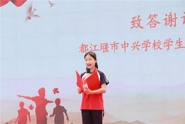 緊接著,六年級(jí)六班的周芷蕎同學(xué)代表全體學(xué)生發(fā)言。她感謝了都江堰市關(guān)心下一代工作委員會(huì)的爺爺奶奶、叔叔阿姨們對(duì)他們的關(guān)心和幫助,并表示將努力學(xué)習(xí),不辜負(fù)大家的期望。