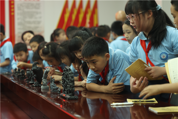 5月29日,在“六一”兒童節(jié)即將到來之際,湖南省邵陽市洞口縣龍山社區(qū)聯(lián)合洞口縣思源學校,組織開展“傳統(tǒng)文化進校園”主題黨日活動。87歲高齡的省級非遺墨晶石雕傳承人、黨員唐文泰帶著作品來到該校,為學生講述洞口墨晶石雕的輝煌發(fā)展歷程,并現(xiàn)場演示墨晶石雕制作工藝,讓孩子們現(xiàn)場感受中華傳統(tǒng)文化的博大精深。