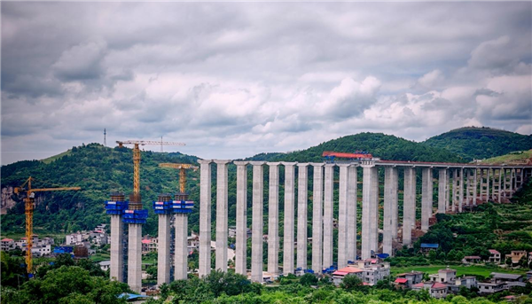 赤木特大橋橋梁全長1168.08米,55米以上高墩柱26個,最大墩高81.97米。樁基施工,克服了喀斯特地貌巖溶強(qiáng)烈發(fā)育地區(qū)的施工難點(diǎn)。下構(gòu)施工,采用了安全、穩(wěn)定、高效的液壓爬模系統(tǒng)服務(wù)高墩柱的方法。目前,橋梁施工正在緊張有序地進(jìn)行。據(jù)中國能建葛洲壩路橋公司新新高速二標(biāo)段項目部有關(guān)負(fù)責(zé)人介紹,赤木特大橋有望在8月底前實(shí)現(xiàn)貫通。