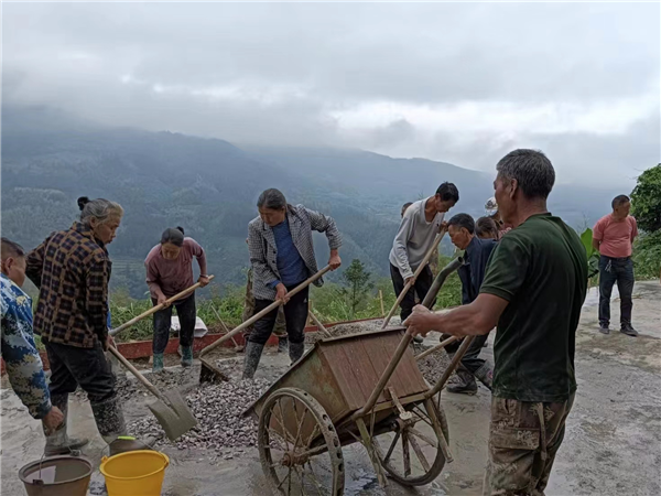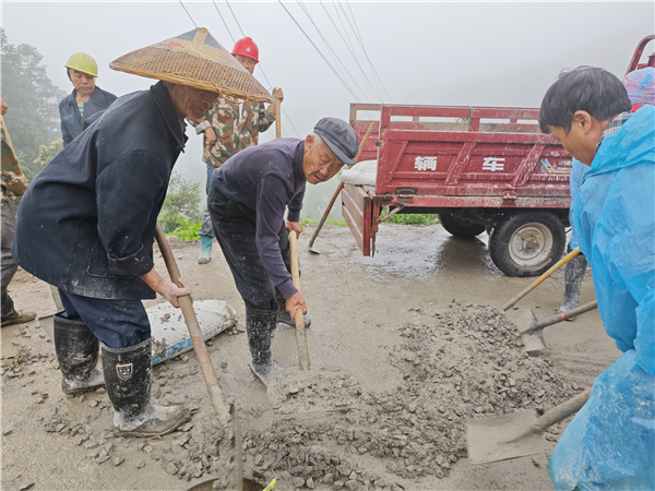 村民齊心,全力以赴修建錯車道。施工現(xiàn)場,運料車來來往往,村民們分工明確、配合默契,有條不紊地作業(yè),有的揮鎬平路、有的揚鏟送料,一派熱火朝天的忙碌景象。陳家壩不少老人聽聞要組織義務(wù)修路,也紛紛報名參與。83歲村民肖輝禮神采奕奕,一邊和水泥一邊說道:“修路是我們大家的事,只要村里組織,我就愿意出工出力!”