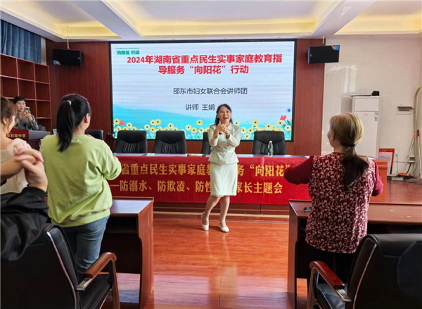 緊接著,邵東市婦女聯(lián)合會講師團講師王娟為大家詳細解讀了2024年湖南省重點民生實事家庭教育指導服務“向陽花”行動。她表示,“向陽花”行動旨在提高家長的家庭教育水平,預防青少年溺水、欺凌和性侵等事件的發(fā)生。王娟講師從防溺水、防欺凌、防性侵三個方面,為家長們提供了實用的教育方法和技巧。她呼吁家長們要時刻關注孩子的身心健康,加強與孩子的溝通,幫助他們建立正確的人生觀、價值觀。