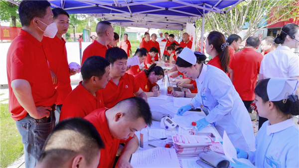 活動現(xiàn)場,鮮紅的場景布置、鮮紅的文創(chuàng)產(chǎn)品、鮮紅的宣傳橫幅和統(tǒng)一的鮮紅服飾,在周圍青山綠水的映襯下,顯得格外醒目靚麗,吸引了眾多群眾駐足圍觀,有的當(dāng)場加入了無償獻(xiàn)血的行列。
