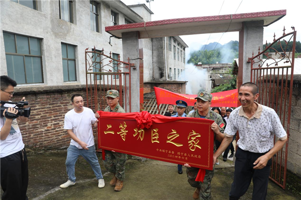 6月14日,湖南省綏寧縣李熙橋鎮(zhèn)陳家村沉浸在一片歡慶熱鬧的氛圍中。隨著“咚咚鏘咚咚鏘......”歡慶熱鬧的鑼鼓聲和鞭炮聲響起,一塊熠熠生輝的“二等功臣之家”牌匾被鄭重地送到了陳家大門口。