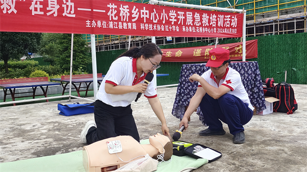 浦江縣花橋鄉(xiāng)中心小學(xué)聯(lián)合浦江縣科學(xué)技術(shù)協(xié)會、浦江縣紅十字會共同舉辦了急救培訓(xùn)活動。浦江縣紅十字會講師何蘭蘭為學(xué)生們普及防溺水安全知識和急救技能。為了讓學(xué)生們更加直觀地了解急救操作,活動現(xiàn)場還設(shè)置了模擬急救場景。在何蘭蘭的指導(dǎo)下,學(xué)生們紛紛參與模擬實(shí)踐,學(xué)習(xí)了如何利用工具進(jìn)行施救、如何進(jìn)行心肺復(fù)蘇操作等技能。縣科協(xié)、紅十字會的工作人員與志愿者們通過現(xiàn)場操作人體模型做急救演示。