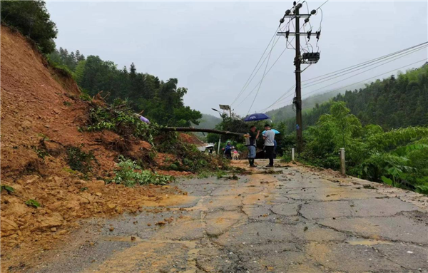 “肖書記,不好了,村道邊高壓拉線附近出現(xiàn)塌方……”6月17日早上5點,該鎮(zhèn)月溪村黨支部書記肖衛(wèi)民就被一通緊急電話叫醒。
