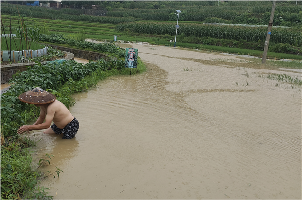 18時左右,晏田鄉(xiāng)蕉林村出現(xiàn)河水倒灌,淹沒稻田?!敖衲甏謇锇l(fā)展120余畝稻魚綜合養(yǎng)殖,魚苗如果被洪水帶走,將給村民帶來巨大損失。”該村黨支部書記周軍華,帶領村支兩委和10余名年輕村民,冒雨清理涵洞、搬運石塊搭建防洪欄,以防止魚苗跳脫。田間水勢很快漲到膝蓋以上,搬運石塊十分艱難。20時左右,防洪欄搭建完畢。大家才發(fā)現(xiàn)周軍華手上、腳上多處受傷。面對眾人的關心,他笑著回答:“沒事,魚苗保住就好。”