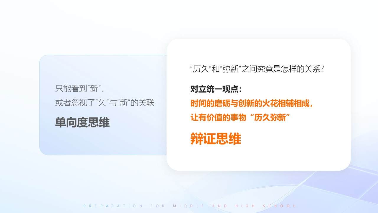 蔣葉光在對近年部分高考真題分析后表示,不論是理科還是文科,初中階段圍繞知識習(xí)得和素養(yǎng)培育,實(shí)現(xiàn)單一考察,“思維更多是單向度,是是非分明的,是非此即彼的”。而高考則是對學(xué)生思維規(guī)律性、辯證思維能力等思維養(yǎng)成和能力訓(xùn)練的綜合考察。