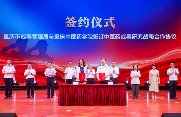 重慶市戒毒管理局與重慶中醫(yī)藥學(xué)院在現(xiàn)場(chǎng)簽署了《中醫(yī)藥戒毒研究戰(zhàn)略合作協(xié)議》,標(biāo)志著雙方將在中醫(yī)藥干預(yù)戒毒、科學(xué)研究、實(shí)訓(xùn)推廣等方面深化合作,為推進(jìn)戒毒工作融合發(fā)展注入新動(dòng)能。