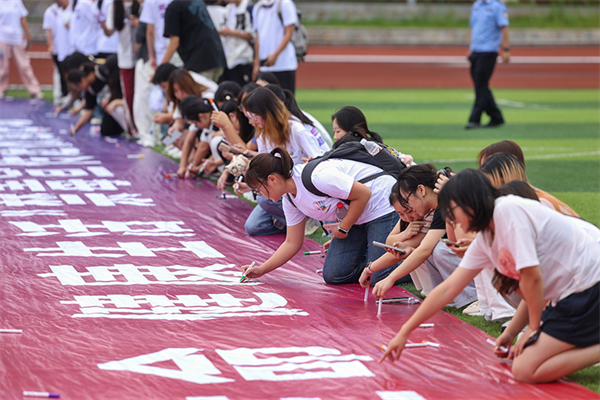 活動(dòng)尾聲,重慶中醫(yī)藥學(xué)院操場(chǎng)上開(kāi)展了“防范青少年藥物濫用”拒毒簽名活動(dòng)。學(xué)院師生身著禁毒宣傳文化衫,在百米巨幅橫幅上鄭重簽名,以青春誓言表達(dá)遠(yuǎn)離毒品、守護(hù)健康的堅(jiān)定決心。