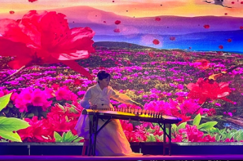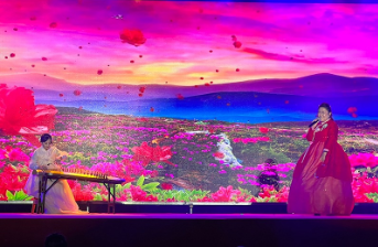 演出現(xiàn)場(chǎng),民族風(fēng)情與紅色文化交相輝映。以金達(dá)萊花為核心意象,舞蹈《金達(dá)萊·紅》率先登場(chǎng),用靈動(dòng)舞姿拉開演出序幕;隨后,奚琴獨(dú)奏《桔梗謠》奏響悠揚(yáng)旋律,舞蹈《頂水姑娘》、《簸箕舞》、《背架舞》展現(xiàn)勞動(dòng)之美,民謠與伽倻琴《幸福阿里郎》、朝鮮族民謠《天下第一村》唱出對(duì)家園的熱愛,一幅幅民族生活畫卷在舞臺(tái)上徐徐展開。情景朗誦《一封家書》與歌曲《繁花依舊》深情聯(lián)動(dòng),提醒觀眾對(duì)當(dāng)下幸福生活的珍視;最終,象帽舞《豐收歌》以歡快節(jié)奏寓意和平碩果,為整場(chǎng)演出畫上圓滿句號(hào)。