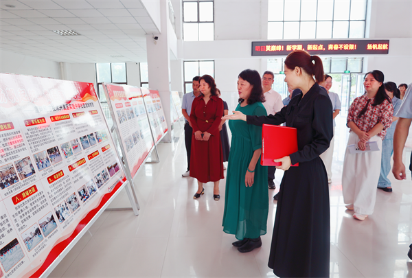 專家組首先參觀了學(xué)校綜合樓大廳展板,全面了解學(xué)校在教科研榮譽(yù)、“四階五維”教研模式、社團(tuán)活動(dòng)及“五育融合”實(shí)踐等方面的成果。隨后,專家們依次走訪了心理咨詢室、黨建文化長廊、謝亞麗名班主任工作室、圖書館與閱覽室、戶外操場、勞動(dòng)實(shí)踐基地等,深入感受學(xué)校育人環(huán)境與文化建設(shè)的深度融合。