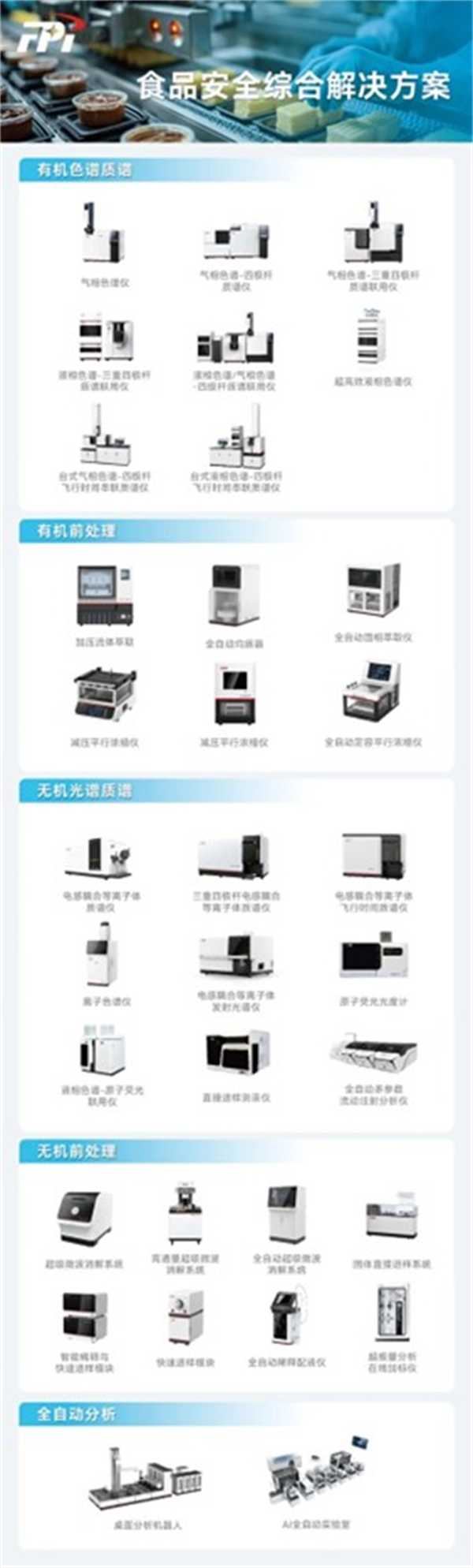 圍繞預(yù)制菜等食品安全全流程檢測需求,聚光科技構(gòu)建起涵蓋添加劑、農(nóng)獸藥、真菌毒素、重金屬等重點(diǎn)關(guān)注物質(zhì)的分析體系。聚焦色譜、質(zhì)譜、光譜、理化分析、自動(dòng)化前處理等關(guān)鍵技術(shù),覆蓋從樣品前處理到高通量分析的各環(huán)節(jié)。