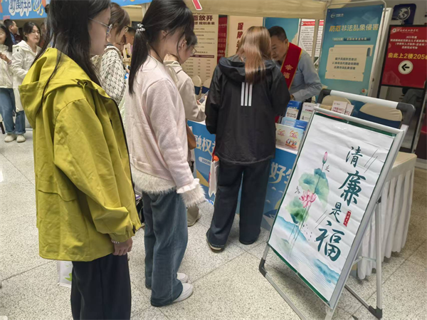 活動(dòng)現(xiàn)場(chǎng),“清廉金融文化”展區(qū)的設(shè)立成為傳播廉潔理念的重要陣地。展區(qū)通過(guò)展示金融領(lǐng)域真實(shí)案例、開(kāi)展互動(dòng)問(wèn)答等形式,讓學(xué)生直觀感受廉潔從業(yè)的重要性;幸福人壽河南分公司的專(zhuān)業(yè)宣講員還結(jié)合《中國(guó)共產(chǎn)黨紀(jì)律處分條例》相關(guān)內(nèi)容,深入剖析金融職場(chǎng)中可能面臨的廉潔風(fēng)險(xiǎn)點(diǎn),用通俗易懂的語(yǔ)言引導(dǎo)學(xué)生樹(shù)立正確職業(yè)觀,助力青年學(xué)子“系好職業(yè)生涯第一??圩印薄?/p>