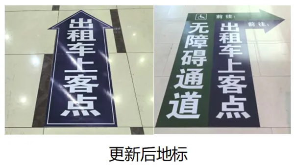 市交通運(yùn)輸局高度重視,第一時(shí)間聯(lián)合產(chǎn)權(quán)單位開(kāi)展排查梳理。8月底前,相關(guān)部門對(duì)廣場(chǎng)無(wú)障礙通道、出租車上客點(diǎn)等關(guān)鍵區(qū)域的指引地標(biāo)進(jìn)行了全面升級(jí)換新。清晰的指引地標(biāo)讓旅客出行更方便,也在無(wú)形中提升旅客對(duì)鎮(zhèn)江的好感度。