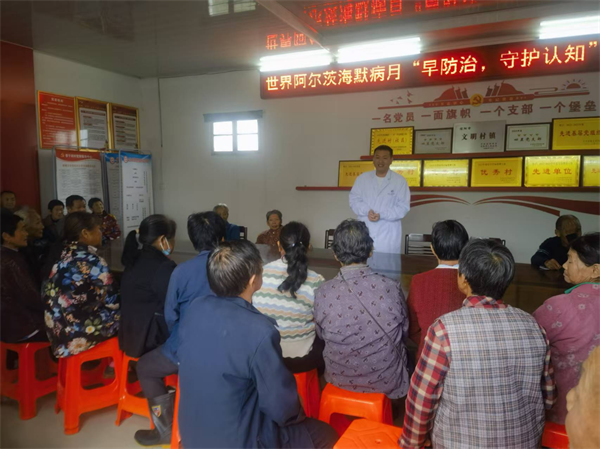 阿爾茲海默癥起病很隱匿、進(jìn)展緩慢,早期癥狀常常被忽視,往往發(fā)展到中晚期才被確診,所以早期識(shí)別、早期干預(yù)、早期就醫(yī)顯得尤為重要。在活動(dòng)現(xiàn)場(chǎng),工作人員集中宣傳講解阿爾茨海默病的早期征兆(如記憶減退、執(zhí)行功能下降等)和危險(xiǎn)因素以及干預(yù)方法,涵蓋飲食、生活方式、體育鍛煉等方面;與老人們互動(dòng)教學(xué)預(yù)防阿爾茲海默癥的手指健腦操,積極引導(dǎo)老人樹(shù)立主動(dòng)管理腦健康的理念。