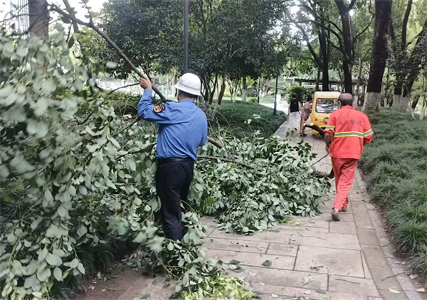 面對這一突發(fā)狀況,隊員第一時間向上級匯報現(xiàn)場情況,并迅速啟動應急響應機制,與區(qū)綠化管理部門緊密協(xié)作。綠化工作人員攜帶專業(yè)工具火速抵達現(xiàn)場,執(zhí)法隊員則在一旁維持秩序,引導過往市民繞行,避免二次事故發(fā)生。他們分工明確,有人負責清理較大的斷枝,有人俯身撿拾零散的落葉,還有人及時裝運清走所有雜物。整個過程高效有序,配合默契。
