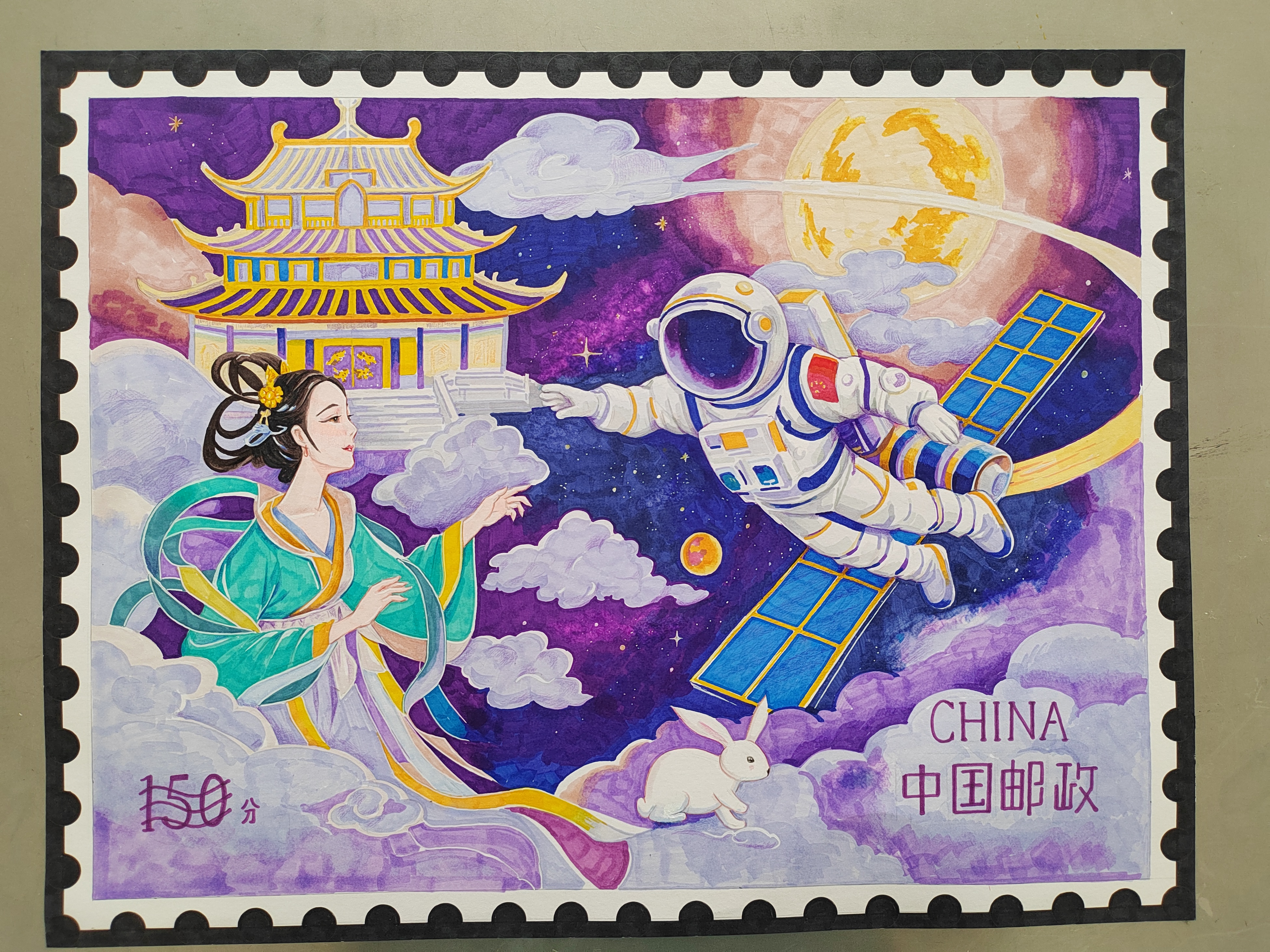 本屆大賽由山東教育電視臺、中國郵政集團(tuán)山東分公司、中郵保險(xiǎn)山東分公司、山東省集郵協(xié)會聯(lián)合主辦,濟(jì)南市郵政分公司承辦,山東美術(shù)館協(xié)辦,大賽規(guī)模持續(xù)擴(kuò)容,影響力穩(wěn)步攀升?;顒幼詥右詠肀愕玫饺∩倌陜和臒崃翼憫?yīng),共征集到來自各市的參賽作品6000余幅。經(jīng)初選、復(fù)選環(huán)節(jié)層層遴選,山東賽區(qū)最終評選出一等獎(jiǎng)20名,二等獎(jiǎng)50名,三等獎(jiǎng)90名,優(yōu)秀獎(jiǎng)200名,共計(jì)360件獲獎(jiǎng)作品。其中,徐圣諾創(chuàng)作的《科技助農(nóng)新圖景》、冷宇琦筆下的《云箋寄遙思》兩幅作品經(jīng)層層推選,分別斬獲全國總決賽二等獎(jiǎng)與優(yōu)秀獎(jiǎng)。