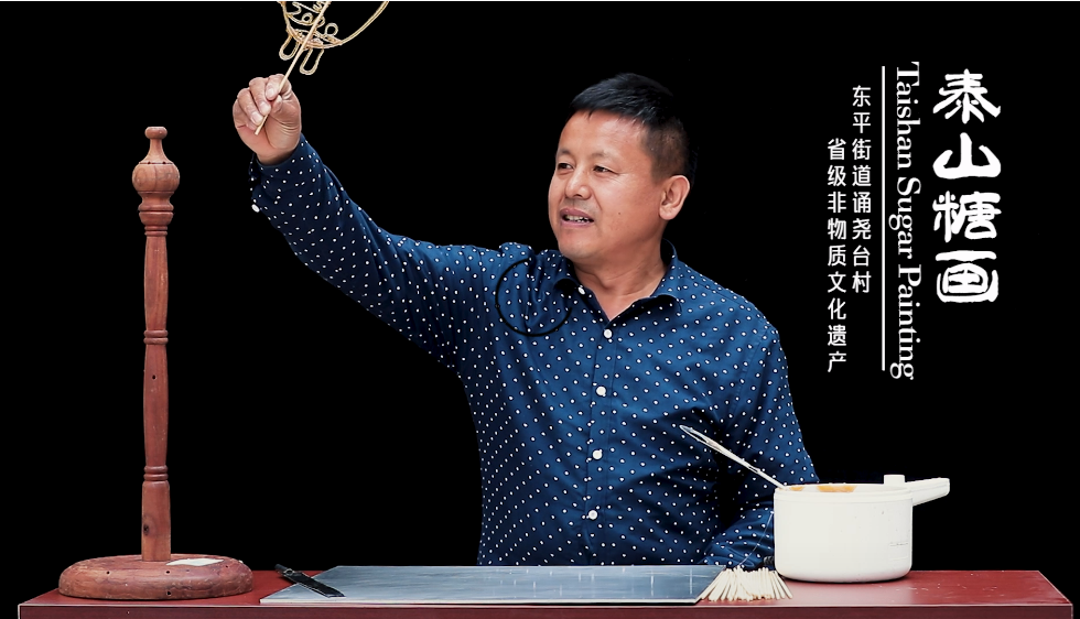 Zhang Changyong is the fifth generation inheritor of Taishan sugar painting in Dongping county of Taian city. Taishan sugar painting technique he inherited was approved as provincial intangible cultural heritage in November 2021. And Taishan sugar painting is also called"pour sugar person" popularly. It could be enjoyed as a kind of candy, and also could be appreciated as a traditional folk handicraft. Now, let's enjoy it by this video together.